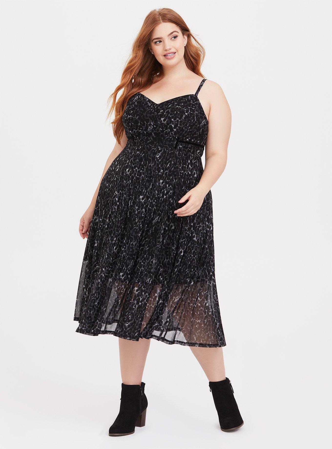 Plus Size Dark Grey Leopard Mesh Midi Dress Torrid Very well made.