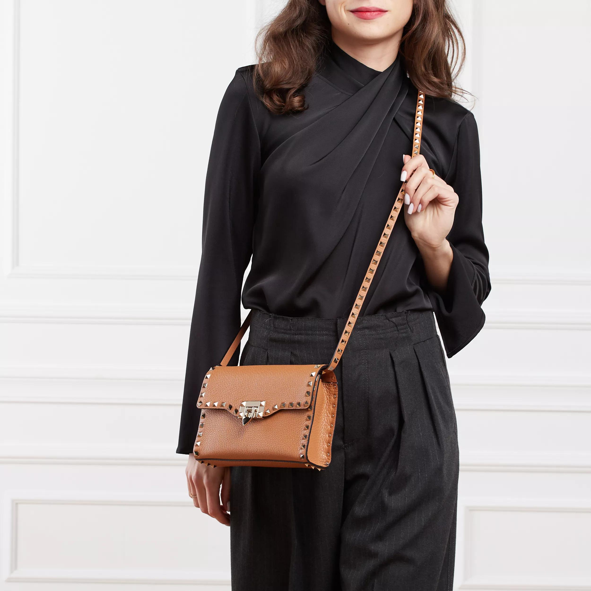 Small Rockstud Grainy Calfskin Crossbody Bag for Woman in Poudre Valentino US Very well made.