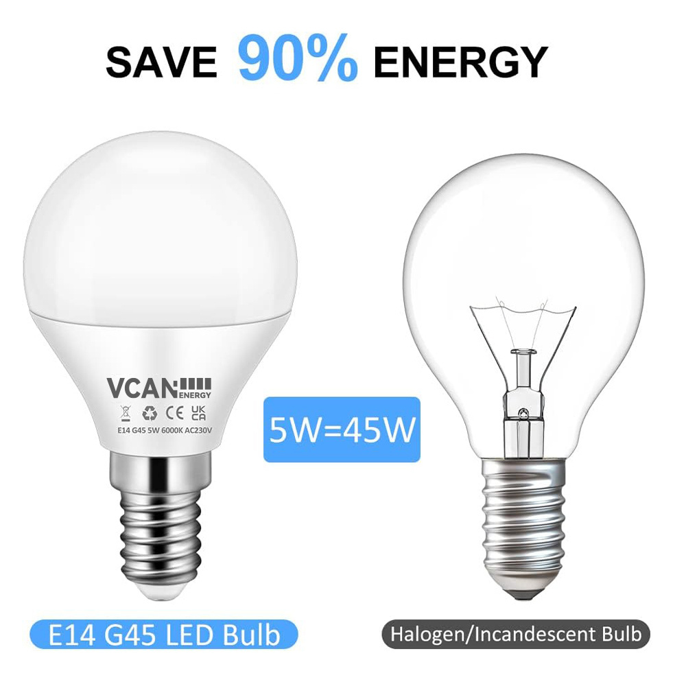 VCAN E14 Bulb 5W Warm White 3000K 450LM Large Edison Screw in Light Bulbs Non Dimmable G45 Golf Ball Energy Saving LED Bulb Very well made.