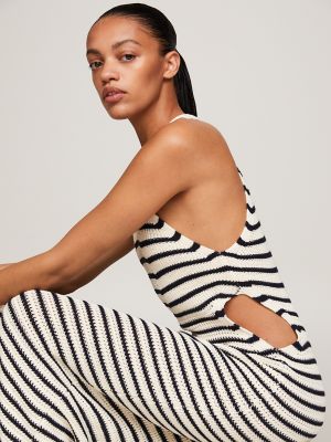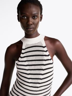 Crochet Stripe Halter Midi Sweater Dress Tommy Hilfiger USA Very well made.