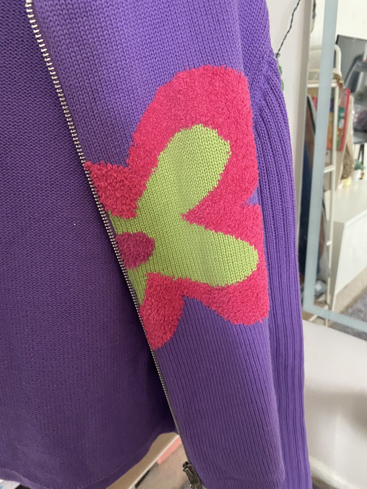 Unif Dazee fuzzy flower purple knit hooded zip up sweater size XS eBay Very well made.