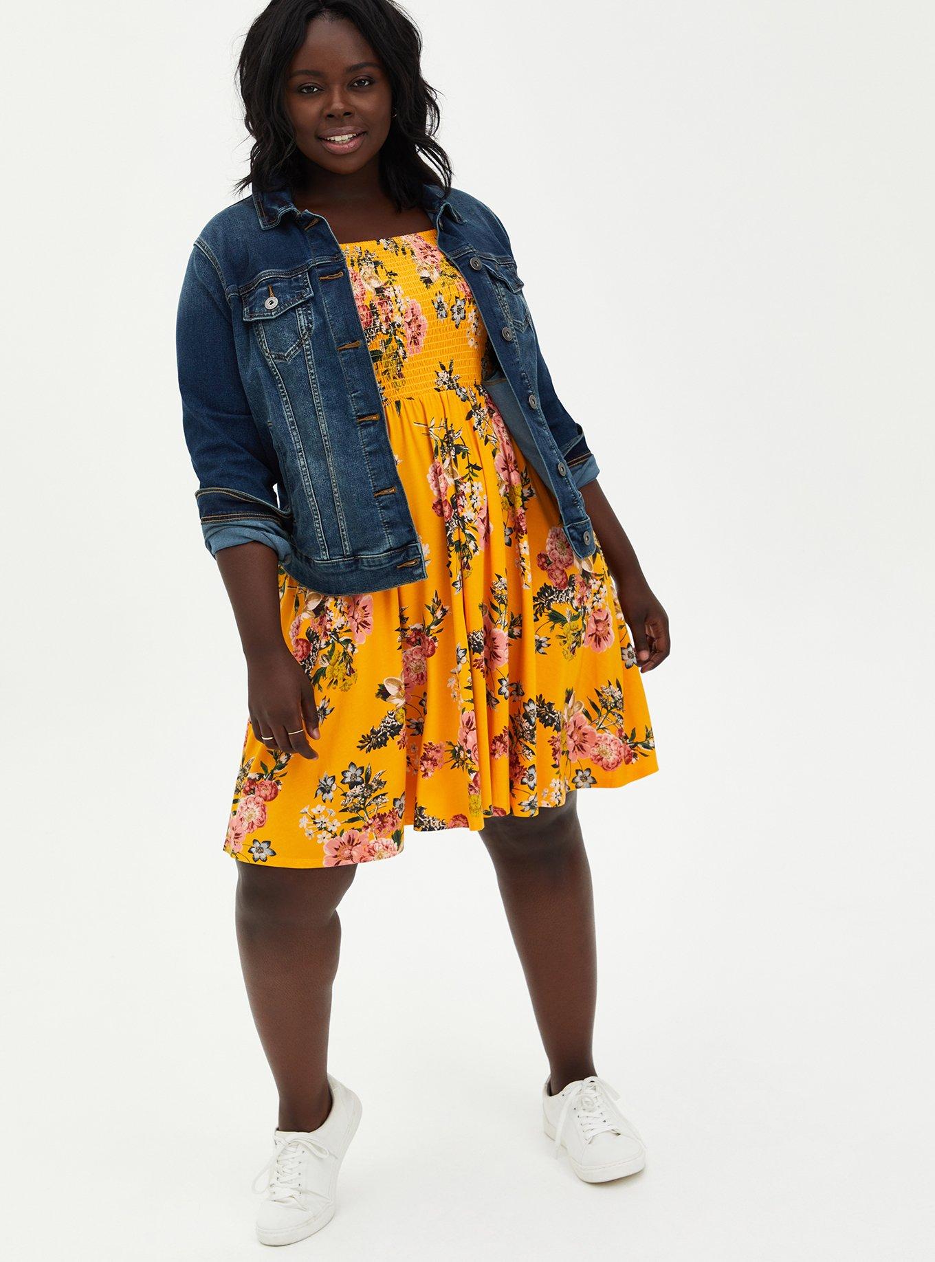 Torrid Mini Challis Sundress Womens 1X Yellow Floral Dress Pockets Stretch eBay Very well made.