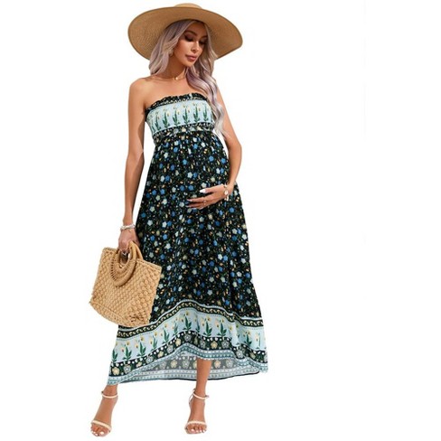 Funjuly Women s Smocked Maternity Boho Dress Strapless Summer Casual Floral Flowy Tube Top Maxi Dress Baby Shower Photoshoot Navy Blue Floral Xl Target Very well made.