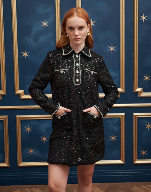 Sister Jane Vestito corto in tweed nero con tasche e paillettes Very well made.