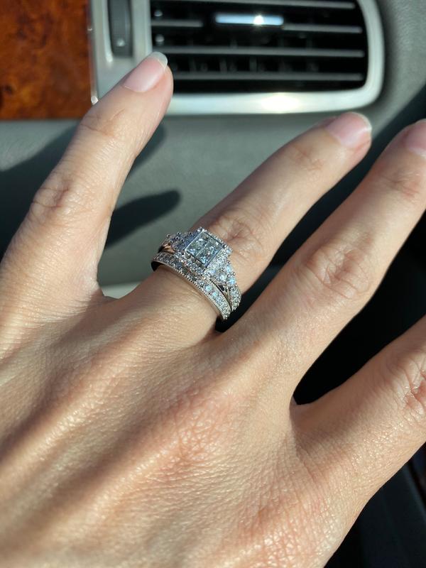 1 2 CT. T.W. Multi Diamond Twist Shank Bridal Set in 10K White Gold Zales Very well made.